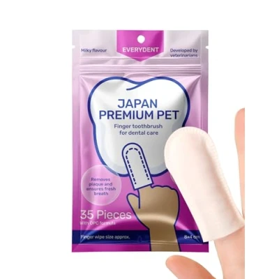 CLEANING: Clean your pet's teeth and gums without toothpaste. Our dog toothbrush finger pads were specially developed by Japanese veterinarians and contain a safe formula with Japanese tea catechin SOFT STRUCTURE: These cat and dog teeth cleaning finger pads has a special 3D-shaped soft structure that makes it easy and quick to collect food residue from teeth and gums and freshen your pet's breath FRESH BREATH: Our cat and dog finger toothbrushes/wipes are soaked in natural toothpaste to give your cat or dog fresh breath. They have a pleasant candy aroma that piques your pet's interest. They're ideal for dog and cat dental care. EASE OF USE: Our cat and dog tooth cleaner finger pads are easy to use. Simply place it on your finger and clean your pet's teeth and gums. The best finger toothbrush for cats and dogs. STRESS-FREE DAILY CARE: Thanks to its sensitive surface, the cat toothbrush doesn't cause pain, even when the gums are pressed hard. This ensures your pet's teeth are cared for daily without stressing either the owner or the pet.