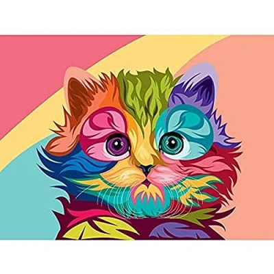 Cat Illustration Cute Colourful Art Print Canvas Premium Wall Decor Poster