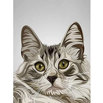 Cat Illustration Grey Unframed Art Print Poster Wall Decor 12x16 inch