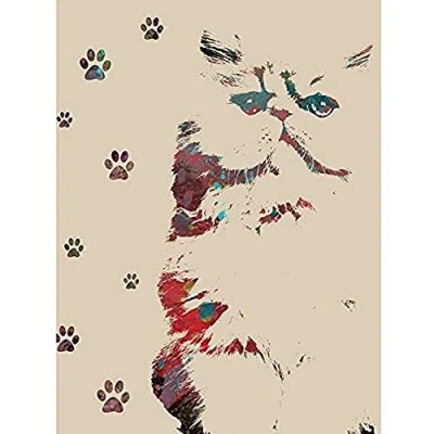 Cat Illustration Paw Prints Art Print Canvas Premium Wall Decor Poster