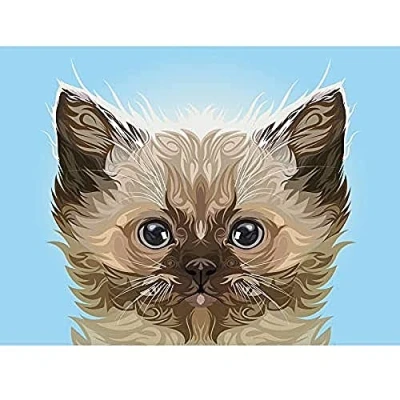 Cat Illustration Persian Kitten Blue Art Print Canvas Premium Wall Decor Poster