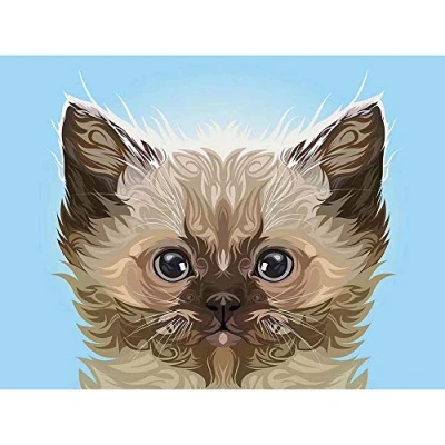 Cat Illustration Persian Kitten Blue Art Print Poster Wall Decor 12X16 Inch