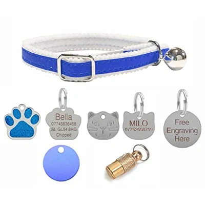 Reflective Cat Collar With Choice Of Engraved ID Tag. Available in Blue, Red, Silver, Turquoise & Yellow. Safety Elastic to enable your pet to escape unharmed if caught while exploring. Please Select which tag you would like. Collars also available without a tag. Simply Click 'Customise Now', enter your required engraving and we will do the rest!