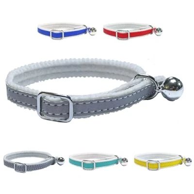 Reflective Kitten / Cat Collar with Safety Elastic & Bell Available in Blue, Red, Silver., Turquoise & Yellow Each collar features safety elastic and a bell - Each fully adjustable! Reflective collars enables your pet to be seen at night! Personalised Tags also available, check out our other items!