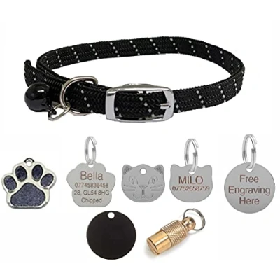 Reflective Softweave Cat Collar With Choice Of Engraved ID Tag. Available in Black, Blue, Pink & Red. Each collar is fully adjustable to fit all size cats! Stretchy soft-weave material to enable your pet to escape if they get stuck while exploring Please Select which tag you would like. Collars also available without a tag. Simply Click 'Customise Now', enter your required engraving and we will do the rest!