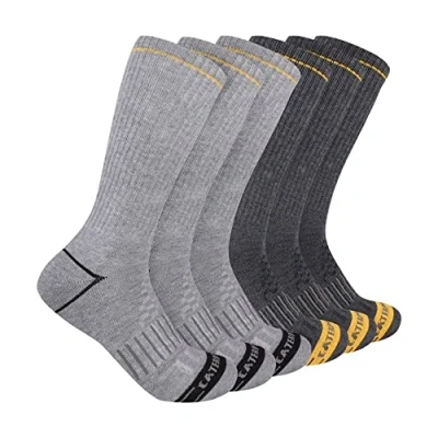 CAT Men's 3 Pack Half Cushioned Crew Socks, Light Grey/Heather Grey (6 Pack), Large (Pack of 6)