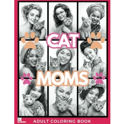 Cat Moms Adult Coloring Book: Beautiful Grayscale Drawings of Diverse Women and Their Cats for Relaxation, Stress Relief Mindfulness (Gorgeous Portraits)