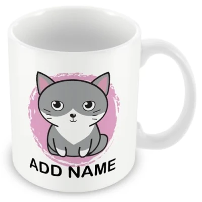 PERSONALISED Cat mug printed with a custom name of your choice beneath a friendly cartoon Cat illustration, creating a unique and thoughtful gift for animal lovers CHARMING caricature-style Cat design set on a colourful vignette background, offering a playful yet stylish look suitable for all ages and settings PREMIUM 11OZ CERAMIC COFFEE CUP – Made from durable white ceramic with a comfortable handle; perfect for tea, coffee, hot chocolate or milk at home, school or the office. This is a full-size mug which holds around the same as a can of fizzy drink. PERFECT GIFT FOR ANY OCCASION – Ideal personalised gift for birthdays, Christmas, Secret Santa or thank-you presents for Cat fans, friends, family and animal enthusiasts PRINTED TO ORDER WITH CARE – At Muggz we have been personalising mugs for over a decade. We professionally print using the highest quality AAA grade mugs and only use the best available inks for strong colour, sharp detail and durability; a high-quality personalised animal mug designed to be enjoyed every day., Manufacturer: ITservices