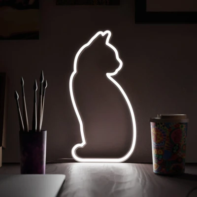 USB & BATTERY POWERED: Both options USB and batteries are available, you can connect USB port or simply connected with rechargeable batteries to operate cat neon sign. MATERIAL: Cat neon light is made of PVC which is soft plastic material so no risk of breakage even its fall on ground, cool light, long life span, light weight and durable material. ENVIRENMENTAL FRIENDLY: These neon light signs are environmentally friendly because no heat emission, unbreakable, energy saver, risk free, not mercury or argon use in so its hazard-free. UNIQUE DESIGN OF CAT: Our beautiful cat design of neon LED lights attracts the viewer and give the cool light in your decor places like bedroom, decorates walls, parties, charismas and many more. PERFECT GIFT CHOICE: These LED neon lights are used in many occasions’ weddings, living room, valentine’s day so this sign is perfect gift choice for friends, babies, relatives & your love ones.