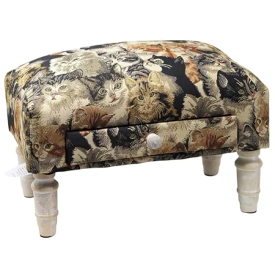 Cat Print Design Footstool with Drawer L25 x W45 H28 cm