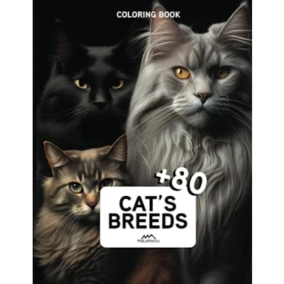 cat's breeds Adult Coloring Book + 80 beautiful Mindfulness and Anti Stress (Anxiety Book) Books for ...