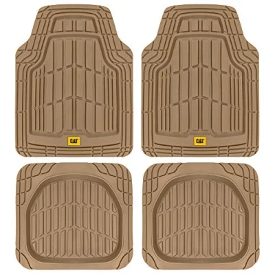 CAT® ToughRide™ Heavy Duty 4 Piece Rubber All Season Floor Mats for Car Truck Van SUV, Beige Premium Trim to Fit Mat, Weather Deep Dish Automotive Mats, Total Dirt Protection