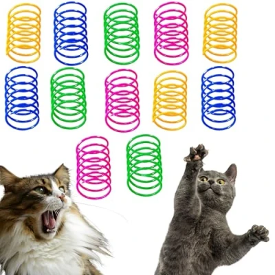 12-Piece Set: A generous set of 12 springs, ensuring your cat always has a new toy to chase, bat, and pounce on. Durable & Safe: Crafted from high-quality materials, these springs are 2.2mm thick, offering a balance of durability and flexibility while being safe for your pet. Exciting Motion: The lightweight springs bounce and roll unpredictably, mimicking the movement of small prey, which will keep your cat engaged and active. Perfect for All Cats: Whether your cat is playful, curious, or just in need of some exercise, these springs are suitable for all cat breeds and ages. Give your cat the gift of fun and exercise with the Purring Pussy Cat Springs Toy – a simple yet effective way to bring joy to your furry companion. Perfect for solo play or interactive bonding time!