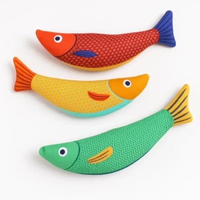 Purring Pussy Colorful Fish Cat Toys – Set of 3 Vibrant & Engaging Design: Each fish features bright, contrasting colors and detailed patterns that stimulate your cat’s senses and spark endless play. Perfect Size for Play: At 25 x 15 x 6 cm, each toy is large enough for kicking and cuddling, yet lightweight enough for easy tossing and carrying. Durable & Safe: Made from soft, pet-safe fabric that stands up to claws, bites, and all-day play. Multi-Pack Fun: Comes as a set of three unique fish to keep playtime exciting and prevent boredom.