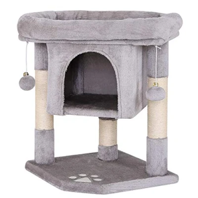 𝗖𝗢𝗠𝗙𝗢𝗥𝗧 𝗭𝗢𝗡𝗘 𝗙𝗢𝗥 𝗬𝗢𝗨𝗥 𝗖𝗔𝗧. This cat scratching post made of soft plush creates the ideal environment for every velvet paw. The scratching tower guarantees species-appropriate playing, resting and hiding. It's the variety that counts. 𝗜𝗗𝗘𝗔𝗟 𝗣𝗟𝗔𝗬 + 𝗥𝗘𝗦𝗧 𝗣𝗔𝗥𝗔𝗗𝗜𝗦𝗘. This cat tree is equipped with a cave and 2 plush balls with bells to satisfy your cat's play instinct. The cosy reclining bed supports the necessary resting phases and the popular observation is not neglected either. The perfect balance between playtime fun and retreat. 𝗢𝗣𝗧𝗜𝗠𝗔𝗟 𝗖𝗟𝗔𝗪 𝗖𝗔𝗥𝗘 𝗪𝗜𝗧𝗛 𝗦𝗜𝗦𝗔𝗟. The hard-wearing sisal trunks of the cat play tower provide the necessary claw care and ensure that your furniture is spared. Pure happiness for you and your four-legged friend. 𝗦𝗣𝗔𝗖𝗘-𝗦𝗔𝗩𝗜𝗡𝗚 𝗘𝗬𝗘-𝗖𝗔𝗧𝗖𝗛𝗘𝗥 𝗙𝗢𝗥 𝗬𝗢𝗨𝗥 𝗛𝗢𝗠𝗘. With a height of 60 cm, this cat toy fits perfectly into any room and provides a pleasant sight with a feel-good guarantee for animals and humans. It is easy to assemble with the enclosed instructions. 𝗗𝗜𝗠𝗘𝗡𝗦𝗜𝗢𝗡𝗦 + 𝗖𝗢𝗟𝗢𝗨𝗥𝗦. This high-quality cat accessory measures 40x40x60 cm, the cave 30x30x20 cm and the plateau 50x32 cm.
