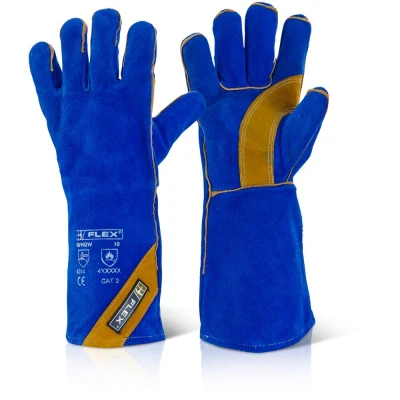 16 royal blue shoulder split leather gauntlet. Fully lined. Gold leather welts. Gold leather reinforced thumb and part palm. Reinforced stitching. EN388: 2016 Level 4 - Abrasion Level X - Cut Resistance Level 4 - Tear Resistance Level 4 - Puncture Level C - ISO 13997 Cut Resistance EN 407:2004 Level 4 - Burning Behaviour Level 3 - Contact Heat Level 3 - Convective heat Level X - Radiant heat Level 4 - Small splashes of Molten Metal Level X - Large splashes of Molten Metal EN12477: 2001+A1:2005 Type A