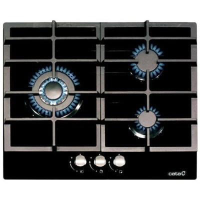 Cata LCIB 6021 BK Butane Gas Glass Plate 3 Burners Cast Iron Injectors and Valves Included Width 59 cm Power 6,25kW Color Black
