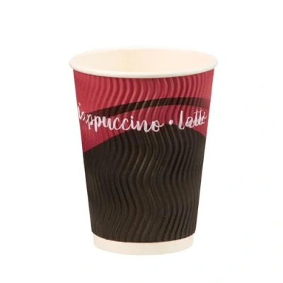 Caterpack 12oz Ripple Cups with Triple Wall Insulation, Disposable Paper for Hot Drinks, Takeaway Coffee and Tea Cups, 25 Pack