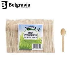Caterpack Enviro Range 100 Wooden teaspoons, Biodegradable/compostable/Disposable 100% Birchwood/eco Friendly Ideal for Catering/picnics/Parties/Camping