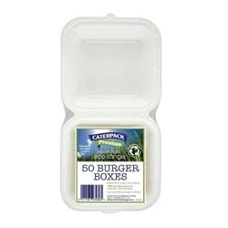 Caterpack Enviro Range burger Boxes 6 x 50 Pack. Disposable, biodegradable boxes. Suitable for microwaving and freezing, water repellent greaseproof