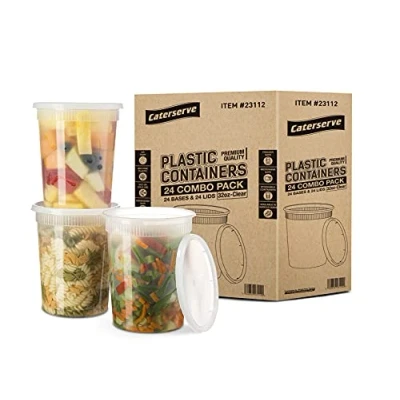 Caterserve Plastic Containers with Lids Food Storage Container Set For Meal Prep Reusable and Leakproof,Microwave Freezer Safe Tubs (32oz 24 Pcs)