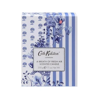 Bring a crisp, clean breath of fresh air into your space with the Cath Kidston Home Fragrance A Breath of Fresh Air Candle 220g.Infused with a revitalising blend of nutmeg, cedarwood, and lilac, with soft touches of patchouli and rose, this fragrance evokes a sense of calm and nostalgia, perfect for creating a serene atmosphere at home.From the moment you open the box, Cath Kidston touches bring a smile. The fresh blue florals and stripes design continues inside, and the candle wax is tinted a soft, tranquil blue. With a burn time of approximately 40 hours, this vegan-friendly candle offers long-lasting fragrance and comfort.Once the candle has burned down, the decorative glass jar is too pretty to part with, repurpose it as a small flower vase, pencil caddy, or keepsake holder. A thoughtful gift or a refreshing treat for yourself, it’s a beautiful way to bring light and clarity to your day.