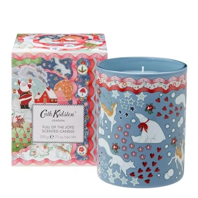 Create a cosy Christmas feeling with the Cath Kidston Home Fragrance Full Of The Joys Candle 220g.Adorned with enchanting illustrations of polar bears and reindeer full of festive cheer, this candle captures the magic of Yuletide with a comforting fragrance blend of crushed mint leaves, frosted eucalyptus, and fir needles, grounded in earthy oakmoss and warm amber wood.Presented in a decorative box ready to gift, the candle wax is tinted a soft, warming grey, perfect for adding seasonal charm to any space.Once the candle has burned down, the glass jar is ideal for repurposing as a small flower vase, pencil caddy, or keepsake holder.With a burn time of approximately 40 hours, this cruelty-free and vegan-friendly candle is a thoughtful home fragrance gift that brings alive the most wonderful time of the year, with signature Cath Kidston touches that are sure to bring a smile.