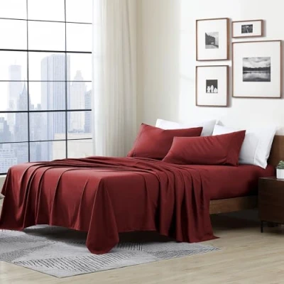Cathay Home Essentials Ultra Soft Hypoallergenic Wrinkle Resistant Double Brushed Microfiber Bedding Sheet Set, Burgundy, Twin XL