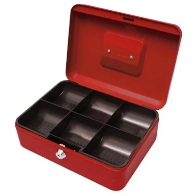 Cathedral Products Key Lockable Cash Box with Lift Out 6 Compartment Coin Tray 10 Inch Red
