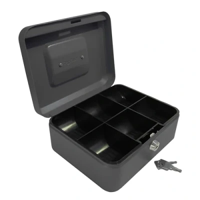Cathedral Products Key Lockable Cash Box with Lift Out 6 Compartment Coin Tray 8 Inch Black