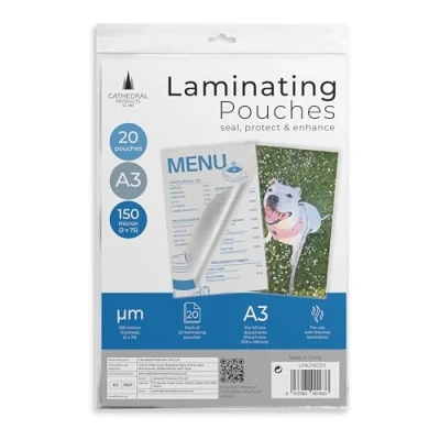 Cathedral Products Pack of 20 A3 Gloss Laminating Pouches 150 Micron
