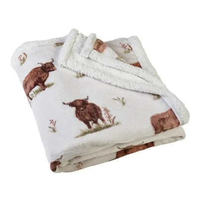 Catherine Lansfield Angus Highland Cow Cosy Fleece 130x170cm Blanket Throw Natural