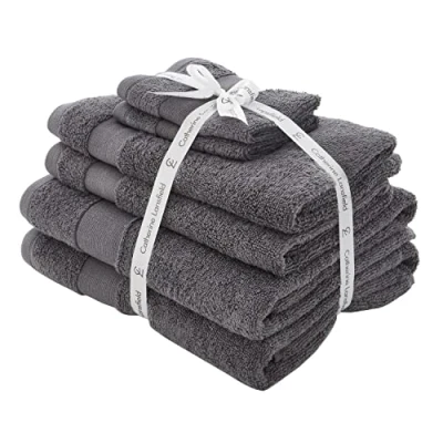 Catherine Lansfield Anti Bacterial Soft & Absorbent Cotton 6 Piece Towel Set Charcoal Grey