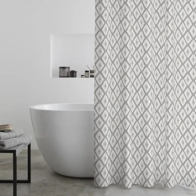 Catherine Lansfield Aztec Diamond180x180cm Shower Curtain Panel Silver Grey