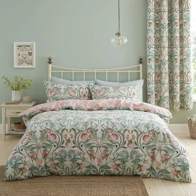 Catherine Lansfield Clarence Floral Single Duvet Set Natural Green