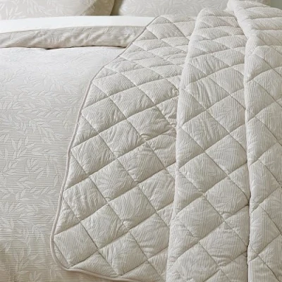 Catherine Lansfield Corded Leaves 240x260cm Quilted Bedspread Champagne Gold