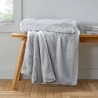 Catherine Lansfield Cosy Glamour Fur 130x170 cm Blanket Throw Silver Grey