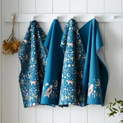 Catherine Lansfield Enchanted Twilight Animals Cotton 50x70cm Kitchen Tea Towel Pack of 4 Navy Blue