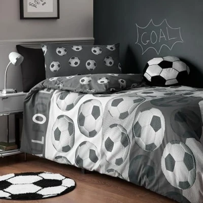 Catherine Lansfield Football Reversible Single Duvet Cover Set with Pillowcase Grey