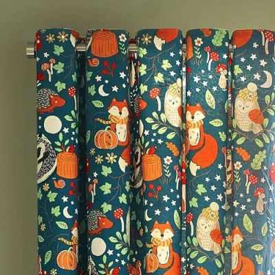 Catherine Lansfield Fox and Woodland Friends Fully Reversible 66x72 Inch Eyelet Curtains Two Panels Green