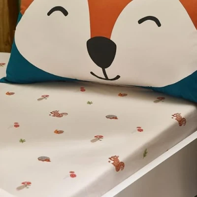 Catherine Lansfield Fox and Woodland Friends Single Fitted Sheet Cream