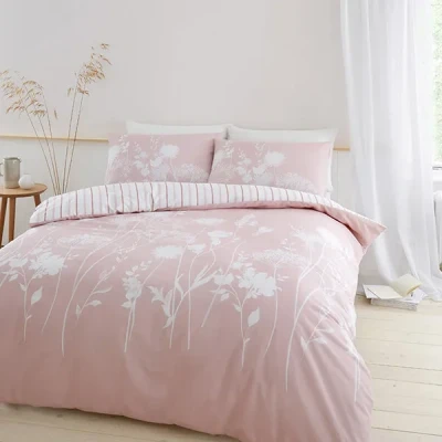 Harts of SturThis Catherine Lansfield Meadowsweet Floral Super King Duvet Set in Blush can elevate any room with a refreshing touch using this bedding adorned with hand-painted floral silhouettes, inspired by the tranquility of rural countryside landscapes. Its classic stripe reverse adds versatility for further styling options, making it the ideal choice for a room refresh.Made from 52% recycled polyester and 48% responsibly sourced cotton. This super king duvet set comes complete with a pair of matching pillowcases.Machine washable following the manufacturer's guidelines and tumble dry safe.Super King: 260 x 220cm.
