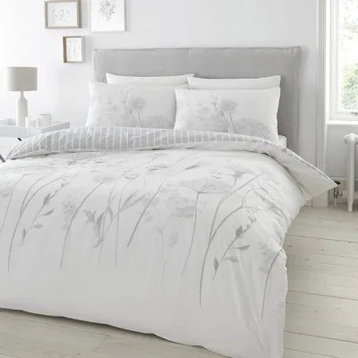 Catherine Lansfield Meadowsweet Floral Super King Duvet Set White Grey
