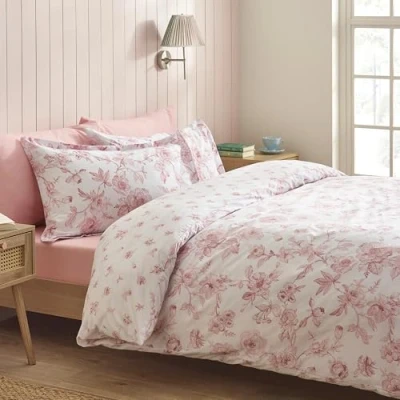 Catherine Lansfield Mirabelle Floral Reversible Single Duvet Cover Set with Pillowcase Pink