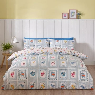Catherine Lansfield Riviera Tiles Reversible Single Duvet Cover Set with Pillowcase Blue