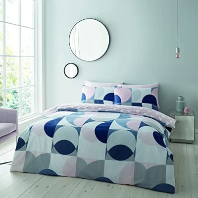 Catherine Lansfield Sirkel Geo 135 x 200 cm Duvet Cover and 1 80 Pillowcase Blush