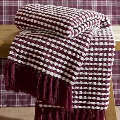 Catherine Lansfield Stab Stitch 125x150cm Blanket Throw Plum