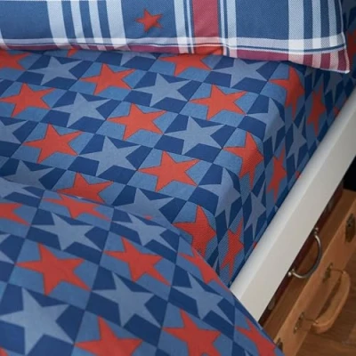 Catherine Lansfield Stars And Check Single Fitted Sheet Blue