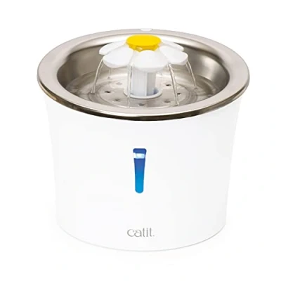 Cats naturally love fresh, running water which makes this Catit Flower Fountain with Stainless Steel perfect for giving your pet fresh, running water. it encourages regular drinking to keep them hydrated, support kidney function and help reduce the risk of urinary tract issues The Triple Action Filtration removes magnesium and calcium that can contribute to urinary problems, while also reducing odours and filtering out hair, sediment and impurities. Unlike standing bowls, this cat fountain delivers clean, moving water at the surface to prevent contamination This cat drinking fountain features a unique petal top with six water pockets, giving cats multiple comfortable drinking points when the fountain is running. It also offers three flow settings - gentle stream, bubbling water, or calm flow - ideal for picky drinkers with different preferences The compact and ergonomic design of the water fountain minimises the stress of your cats whiskers, making drinking more comfortable for your cat The drinking fountain has been designed to disassemble easily, making the cleaning process quick and easy, so your cat isn't without their favourite water fountain for too long!