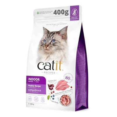 Catit Recipes Indoor/Sterilised Adult Poultry 1 Year + Dry Cat Food, 400g x 6